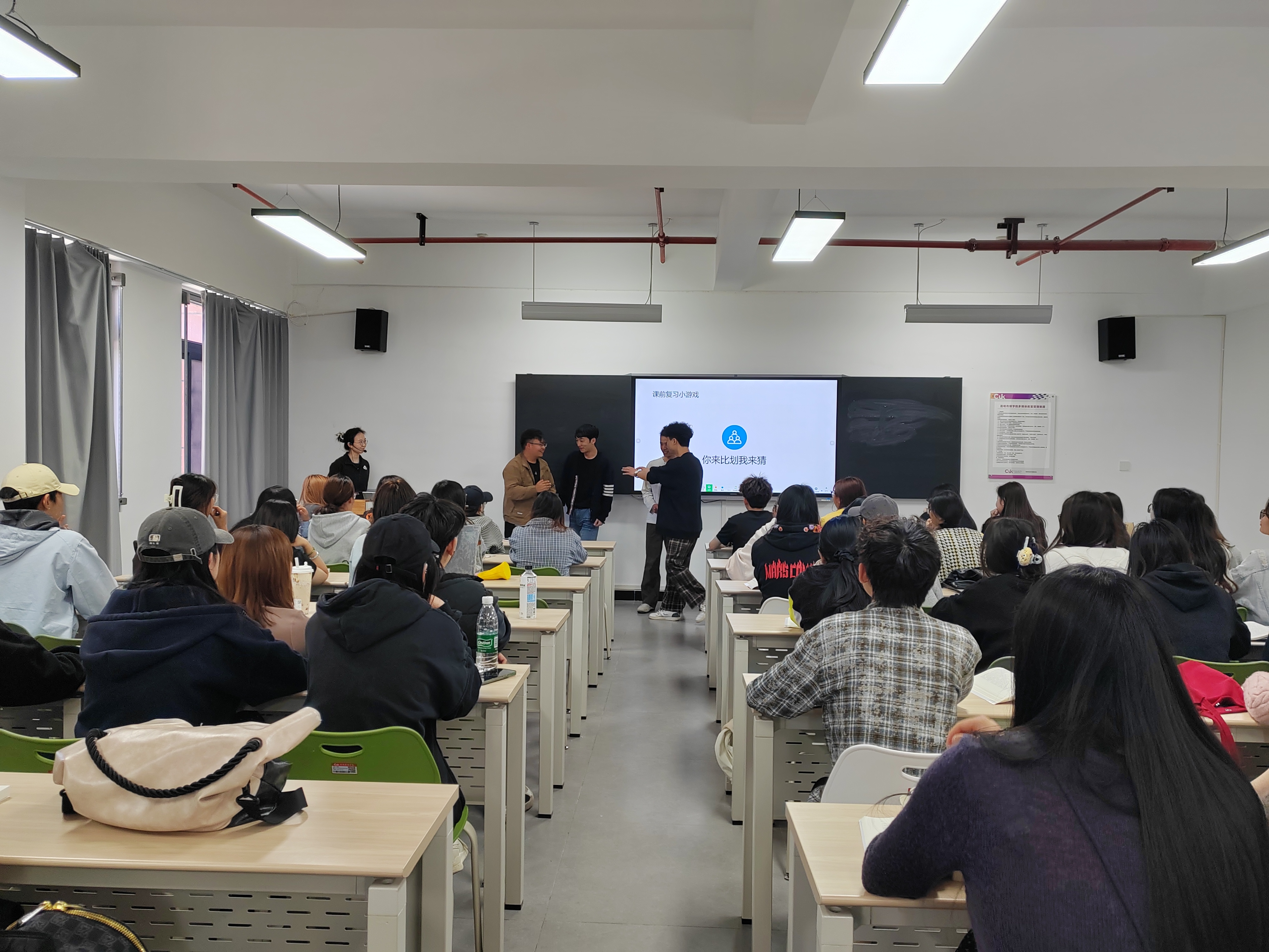 朱发刚书记一边仔细观察课堂秩序和学生的听课状态,一边在听课记录本上认真记录。课堂上,李玲玲老师准备充分,授课逻辑清晰;学生们精神饱满,到课率高,课堂互动活跃,展现了良好的教风与学风。