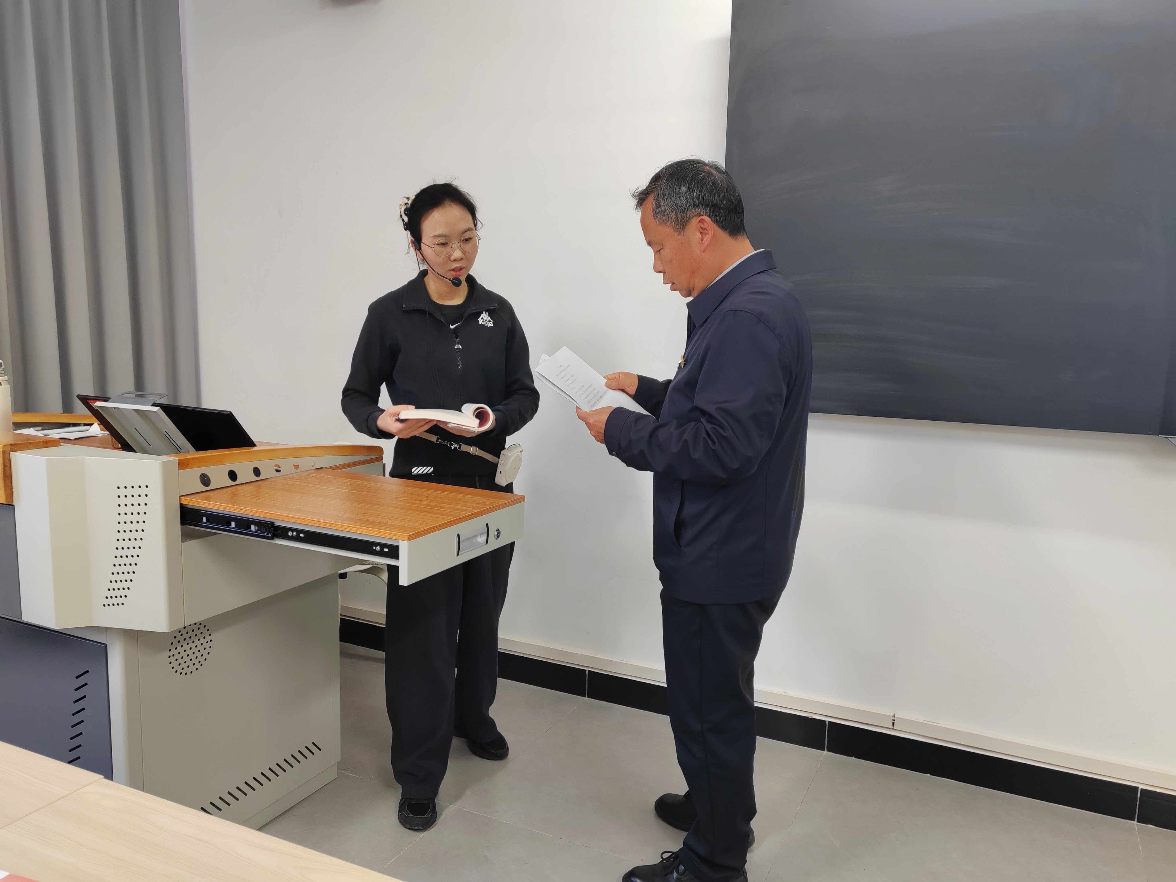 课后,朱发刚书记与李玲玲老师进行了亲切交流。他对教师认真的教学态度、精心的课堂导入给予了充分肯定。他指出,思政课是落实立德树人根本任务的关键课程,思政课教师要持续深化教学改革,创新教学方法,不断提升育人实效,牢固树立“以生为本”的服务意识。